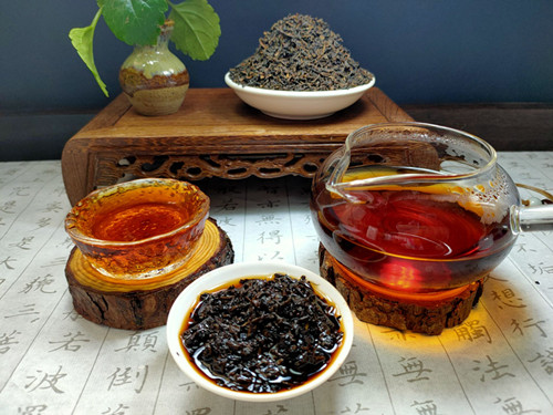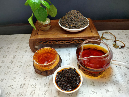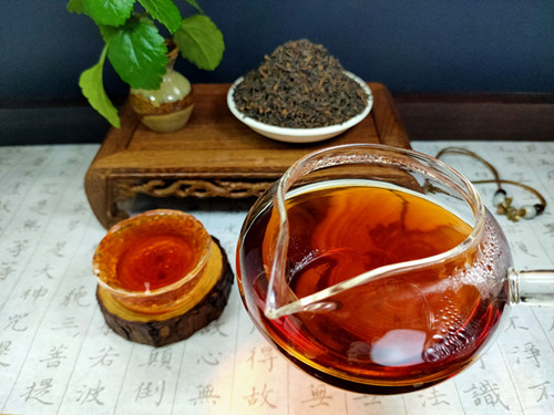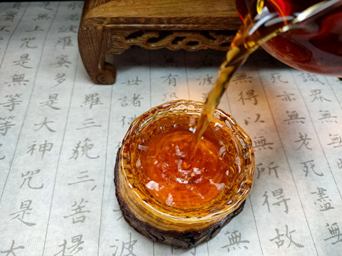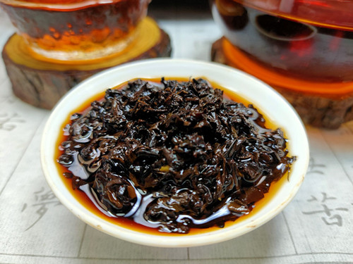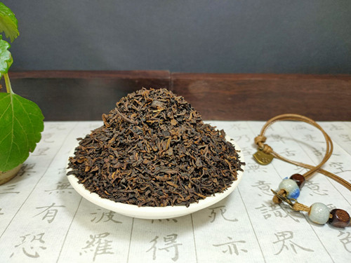 【产品简介】:选用西双版纳大叶种宫廷级晒青毛茶为原料。经传统工艺发酵,古法精制而成,散茶条索细腻,尽显金毫,比较碎的感觉,冲泡两次后茶汤通透红浓,汤汁厚实细腻,入口有浓厚的胶质感,绵密顺滑,延伸至喉部的醇厚韵味,一般浓郁的陈香混合参香味散发出来,两颊甘甜润泽,层次感丰富。是一款适合自饮品尝的熟茶。