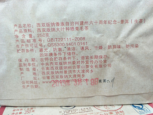 | 产品名称 : | 2013年龙园号 西双版纳建州六十周年纪念砖茶 250克州庆青砖 生茶 |