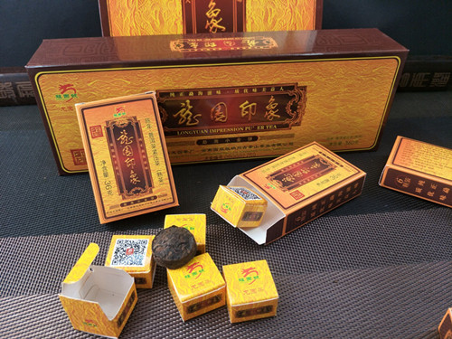 | 产品名称 : | 2017年龙园号 龙园印象 勐海小金饼 36克盒装古树迷你小熟饼 熟茶 |