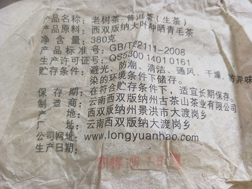 | 产品名称 : | 2014年龙园号 版纳印象 精品老树茶 380克厂长签名 限量青饼 生茶 |