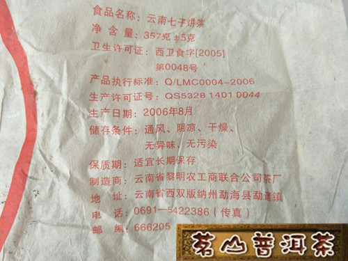 【产品特点】:本品系选用西双版纳州勐海县布朗山大叶种乔木古茶树上采摘的芽叶,经高温杀青,手工揉制,日光干燥,再经高温蒸压而成。具有汤色桔黄,入口微苦化得快,润甜醇厚,陈香悠悠,滋味浓烈厚实,回甘生津,“霸气”突出之特点,早期黎明茶厂传统经典好生茶,值得拥有。为藏家收藏的佳品。