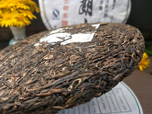 【茶品特点】 选用的是勐海布朗山乔木古茶树的鲜叶为原料,采用手工传统工艺方法制作出晒青毛茶,后经高温蒸压制成,茶饼叶片条索肥壮、厚实。色泽乌绿,带有明显的晒青味道。用料较细,大约3到4级鲜叶,没有老梗或茶果等夹杂物。叶片表面白毫显露,润泽度高。汤色金黄,口感醇厚、茶气很足,生津、回甘颇佳。初闻香气不高但随着茶汤入口,清幽的香气顺着上颚进入鼻腔,使人有愉悦的感觉。咽下茶汤时很滑很顺畅,对喉部没有刺激感。香气和回甘在口腔中持久不散,后韵颇佳。