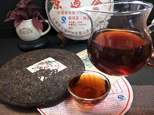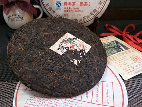 【 特 点】:精选云南六大茶山景迈茶区大叶种早春乔木晒青毛茶为原料,经传统制茶工艺加工制作而成,茶饼周正圆润,条索清晰紧结,肥硕润泽,汤色红浓明亮,香气浓郁,滋味醇厚,回甘生津,纯和香甜,干仓存放至今,现在品饮,口感好!是一款值得收藏品饮的上好熟茶品!