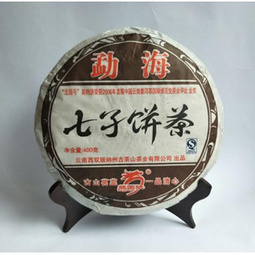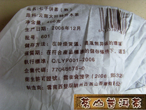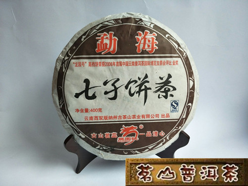 【介绍】:此产品荣获2006年首届中国云南普洱茶博览交易会评比金奖,为西双版纳傣族自治州龙头企业-古茶山茶业有限公司龙圆茶厂2006年成品熟茶,601批次,采用勐海熟茶一流技术,精心发酵,高温蒸压而成,工艺源用勐海茶厂大益7572工艺及配方,属于最传统的云南普洱茶老口味。此茶通过在昆明纯天然的干仓环境中存放,汤色红浓明亮,陈香显著,口感滑润柔和,茶汤具有明显的浓稠度,是休闲品饮、保健养生、馈赠送礼、收藏存放的上好茶品。