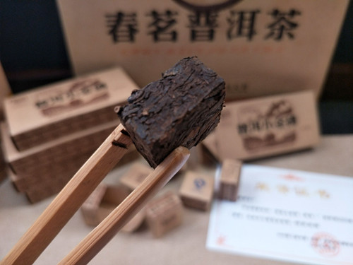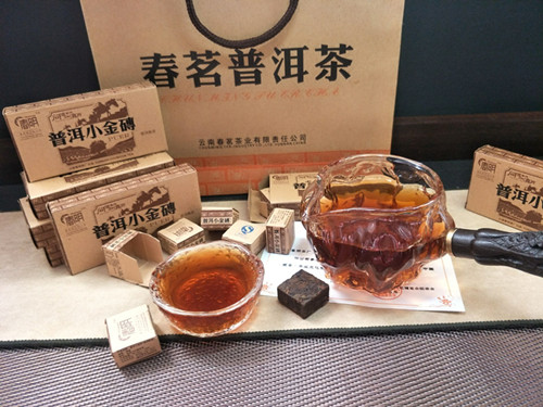 【商品介绍】本产品选用云南高海拔大叶种乔木茶为原料,经传统发酵工艺精心压制而成。成型小砖迷你小巧,条索匀净,色泽褐红,冲泡后汤色明亮,入口甘甜滑润,独特陈香气味高扬,茶味醇厚悠长,后韵十足耐人品味。特级小金砖获茶博会金奖,口味醇香耐泡,每次一粒,冲泡方便,是居家待客,馈赠亲友的上佳选择,值得品饮收藏。