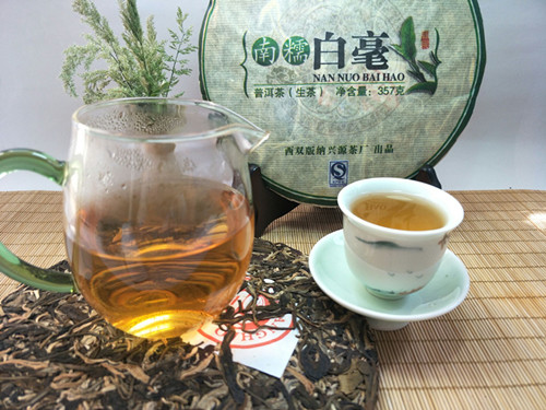 【详细介绍】此产品采用西双版纳傣族自治州境内南糯山特级白毫茶料压制,外形平滑,厚薄均匀,松紧适度,条索粗壮,汤色明亮,入口醇和,香气扬,带着南糯山茶特有的果香味,回甘快,口味清香,茶气厚实,生津持久。