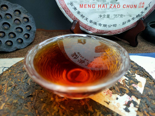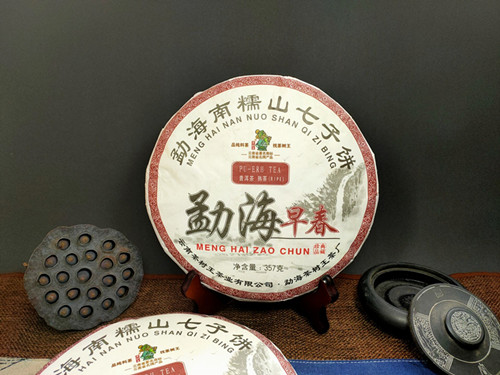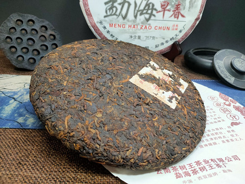【产品简介】本款勐海早春熟茶七子饼精选勐海茶区早春茶,采用传统工艺压制而成,饼型周正,色泽油亮呈红褐色,金豪显露,汤色红浓明亮,口感陈香浓郁并带有显著的勐海口味,顺滑爽口,回甘持久,是一款值得品饮与收藏的佳品!