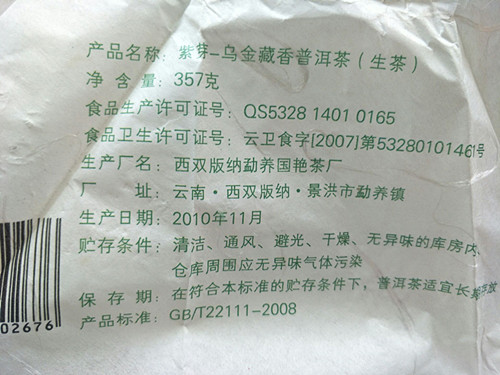 【名称】: 2010年国艳 乌金藏香 紫芽精品 青饼
