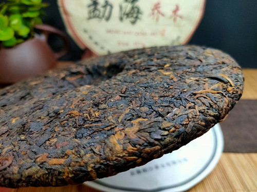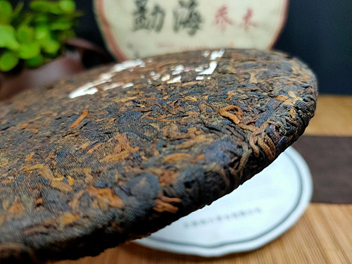 【产品特点】选用勐海茶区大叶种晒青毛茶为原料,遵循传统古法压制而成,外包装古色古香,饼型周正,松紧适中,条索粗壮,金毫洒面,发酵适度,内含物质丰富,汤色红浓明亮,晶莹剔透,香气馥馨,纯正浓郁,口感浓稠柔滑厚重,滋味醇厚回甘,香甜顺滑,耐泡度高。叶底肥厚饱满,富有弹性。品质优良,越陈越香。昆明纯干仓存放,浓浓的陈香口味,值得品饮收藏。