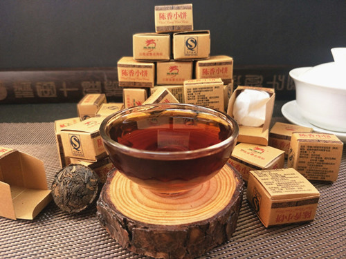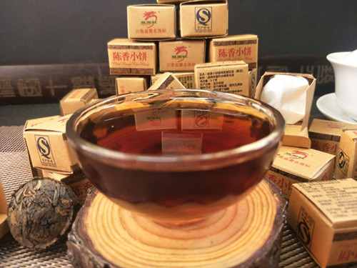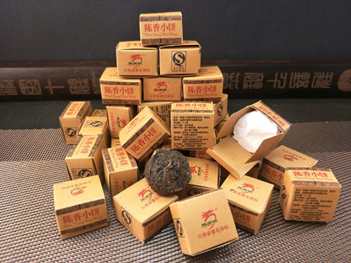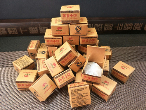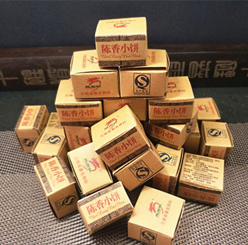 【产品特点】:老包装勐海陈香小饼,选用勐海早春乔木晒青毛茶,经传统工艺配方压制而成,迷你小饼茶叶条索清晰,冲泡后汤色红浓明亮,滋味陈香浓郁,醇厚稠滑,韵味悠长。经久耐泡。陈香小饼每盒约6克,独立包装,干净卫生,品饮方便,每次一颗,沸水冲泡即可!可反复冲泡多次,越泡越好喝,是一款很好喝的大众熟茶,携带方便,冲泡简捷,雅俗共饮。