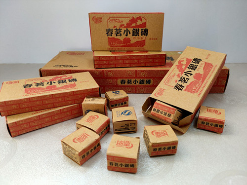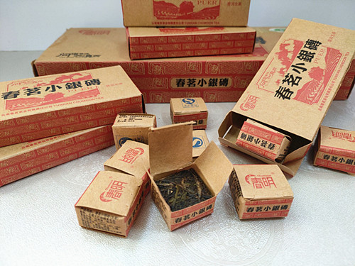 【产品特点】春明普洱茶原料采用云南滇西高海拔古树茶园的优质大叶种茶叶,经多道工艺蒸压压制而成,拼配以细嫩和中壮茶青相结合,成茶迷你小砖端正小巧,条索匀净紧结,白芽显露,冲泡后汤色明亮,香气纯正,滋味爽滑,馥郁醇厚,回味甘甜,叶底嫩匀,持久耐泡。小银砖一次一粒方便冲泡,是居家待客品饮的一款好茶。