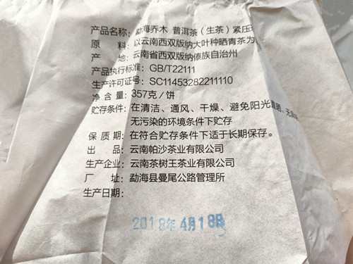 | 产品名称 : | 2018年帕沙茶业 箐源昌 勐海乔木 云南七子饼 357克珍品青饼 生茶 |