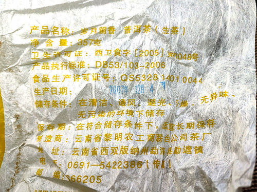 | 产地: | 勐海 |