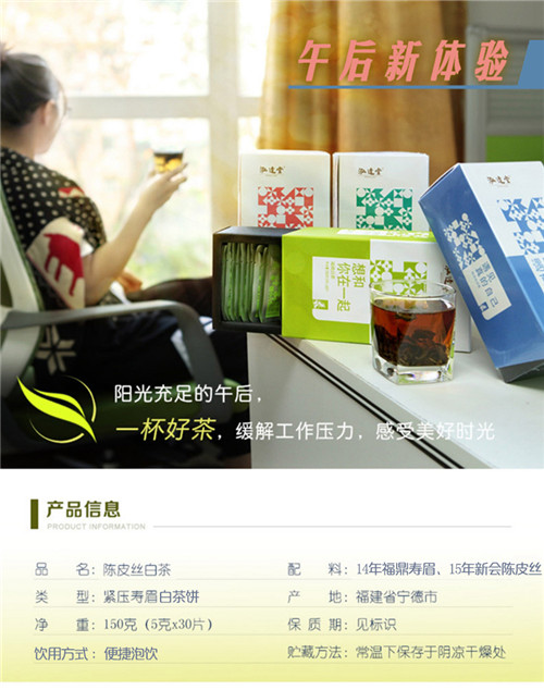 泓达堂 陈皮丝白茶小方块 福鼎白茶+新会陈皮 150克/盒