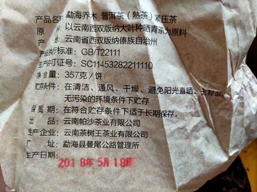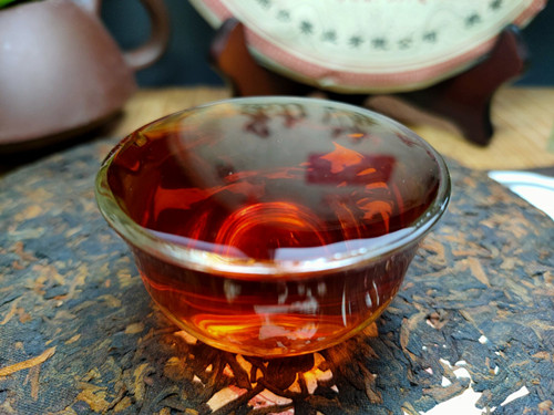 【产品特点】选用勐海茶区大叶种晒青毛茶为原料,遵循传统古法压制而成,外包装古色古香,饼型周正,松紧适中,条索粗壮,金毫洒面,发酵适度,内含物质丰富,汤色红浓明亮,晶莹剔透,香气馥馨,纯正浓郁,口感浓稠柔滑厚重,滋味醇厚回甘,香甜顺滑,耐泡度高。叶底肥厚饱满,富有弹性。品质优良,越陈越香。昆明纯干仓存放,浓浓的陈香口味,值得品饮收藏。